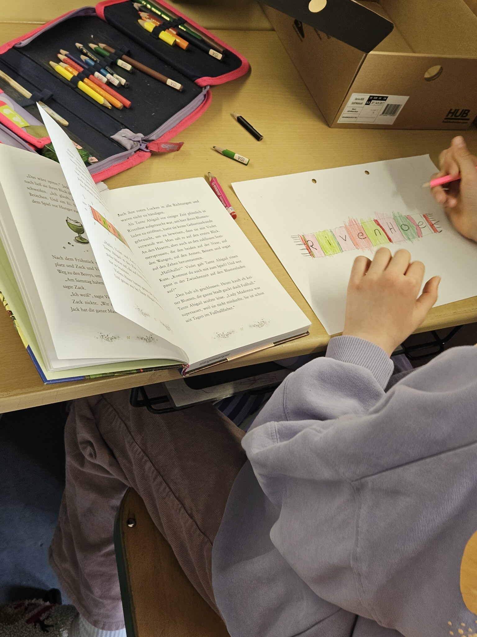In der 1. bis 4. Stunde arbeiteten die Schülerinnen und Schüler in ihren Klassen intensiv an verschiedenen Projekten rund um ausgewählte Bücher. Dabei wurde gelesen, gebastelt, geschrieben und präsentiert. Die Kinder setzten sich auf vielfältige Weise mit den Geschichten auseinander und konnten ihrer Kreativität freien Lauf lassen. So entstanden beispielsweise Plakate, kleine Theaterstücke, Leserollen und viele weitere spannende Ergebnisse.