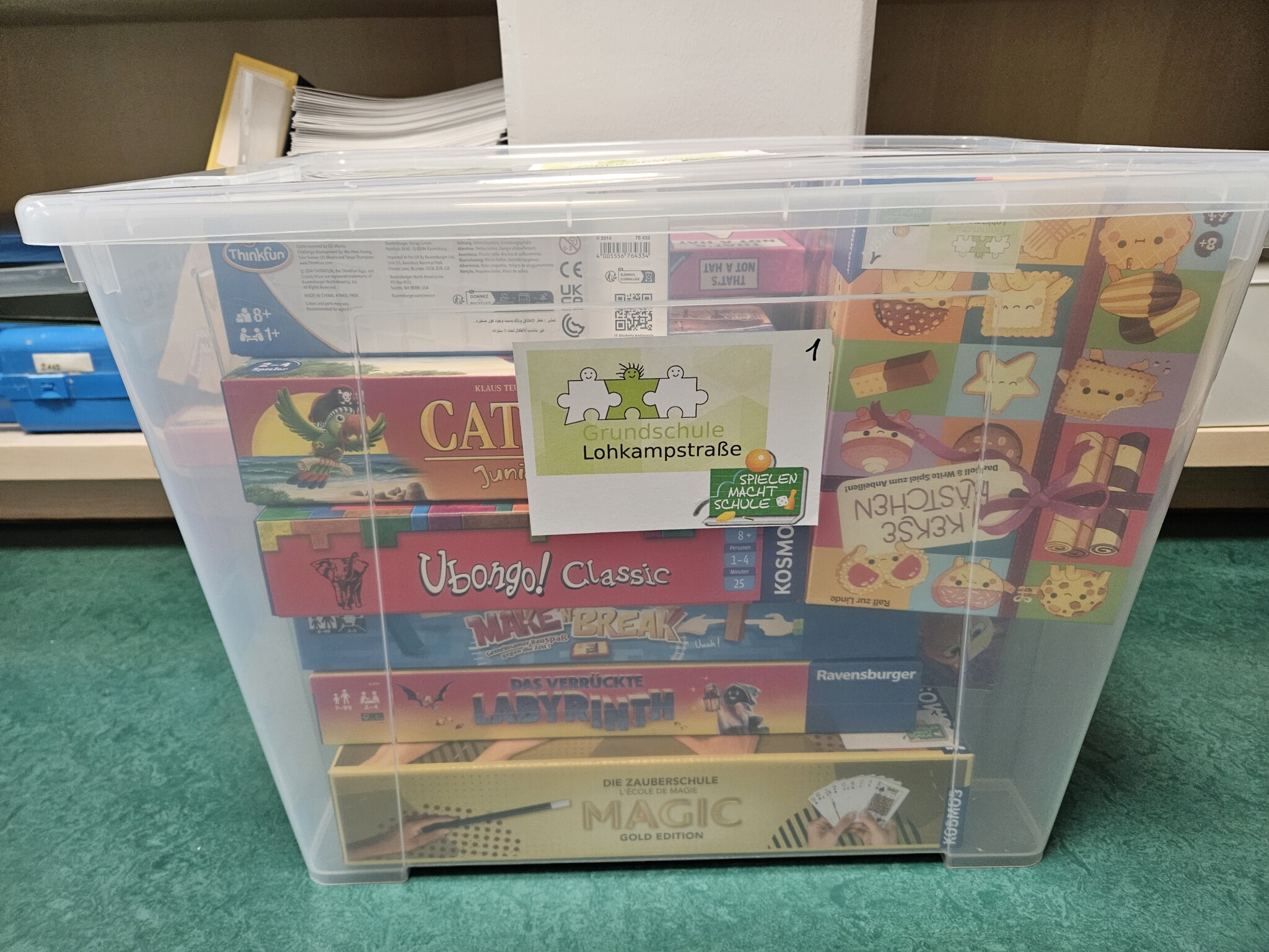 Im Rahmen dieser Initiative haben wir eine großzügige Spende an Spielen erhalten, die in praktischen Spielekisten (als Alternative zu einem Spielezimmer) unseren Unterricht und die „Geh-aufs-Ganze“-Stunden bereichern.